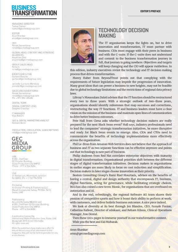 Business Transformation is a content portal, publication, and event organiser, launched with the objective of partnering with businesses, consultants and technology vendors to enable the process of digital transformation and business restructuring for the digital age.