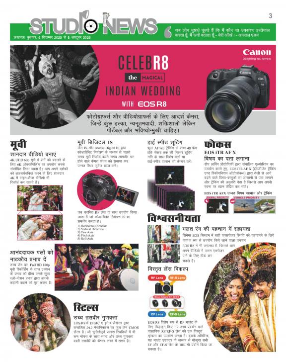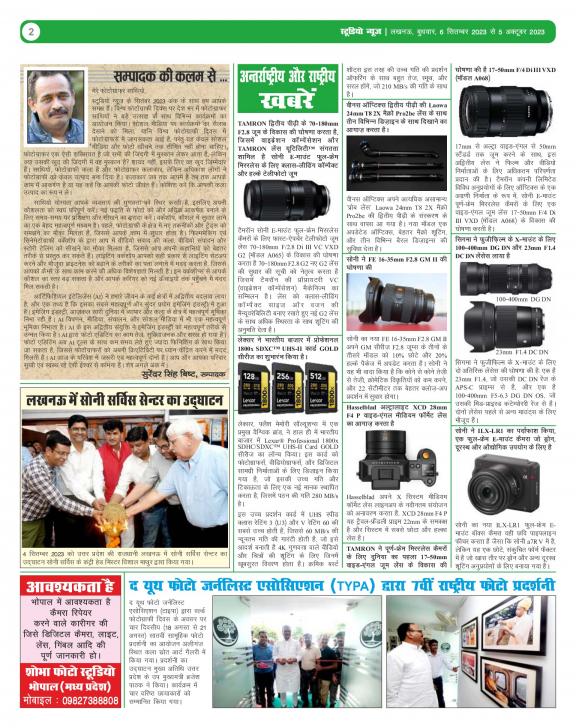 Studio News is monthly 16 pages multi-color tabloid in Hindi. This is India First Photography newspaper, which is published in Hindi, enabling the studios, photographers and other Photography trade related technicians to get first-hand knowledge and understanding about the latest products, help them acquire skill to use the products and make them proud owners. STUDIO NEWS is focusing and distributing hard copy, to the studios in India’s state -Uttar Pradesh RAJASTHAN, GUJARAT, PUNJAB, HARYANA, HIMACHAL PRADESH, UTTARAKHAND, DELHI, BIHAR, CHHATTISGARH, JHARAHAND & MADHYA PRADESH. Circulation of hard copies is approximately 10000 every month. The main objective of The STUDIO NEWS is to educate studios, photographers and technicians with the latest technical knowledge of camera, video and other trade related equipment’s; familiarize them with the editing and other software features and support them with wide range of usages of new technological equipment’s which are quite unknown or ambiguous to them due to language barrier.