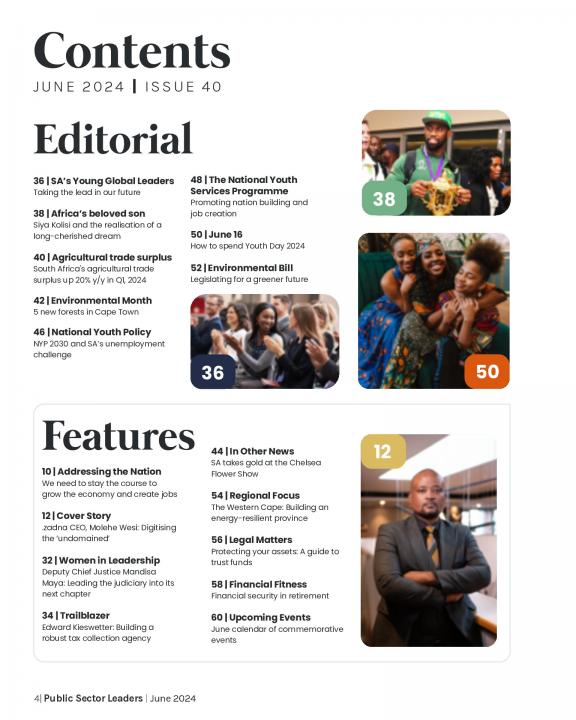 senior leaders in public service and the public sector in general, Public Sector Leaders speaks to an audience with the highest level of authority - government decision-makers. With a digital readership of 40 000 monthly, Public Sector Leader is the only specialised platform that offers a window of opportunity for marketers and communicators in both the public and private sectors to engage with an audience of senior government officials. As a group, this audience presides over a procurement budget of more than R150 billion per annum and their requirement list includes both products and services from the corporate sector. Their procurement decisions range from acquiring technology solutions, legal services, performance tools, audit services, communication solutions, catering services, security, office equipment, buildings and facilities, environmental products, waste-management solutions and general products. The Purpose of the Brand: Celebrating and showcasing trusted ethical and best practice in the public sector to an African & global audience - highlighting innovation, policy making and community initiatives Shining an independent light on what public servants are doing Our goal is to start in South Africa and grow into Africa
