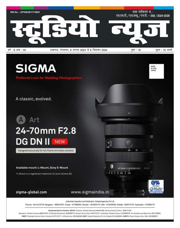 Studio News is monthly 16 pages multi-color tabloid in Hindi. This is India First Photography newspaper, which is published in Hindi, enabling the studios, photographers and other Photography trade related technicians to get first-hand knowledge and understanding about the latest products, help them acquire skill to use the products and make them proud owners. STUDIO NEWS is focusing and distributing hard copy, to the studios in India’s state -Uttar Pradesh RAJASTHAN, GUJARAT, PUNJAB, HARYANA, HIMACHAL PRADESH, UTTARAKHAND, DELHI, BIHAR, CHHATTISGARH, JHARAHAND & MADHYA PRADESH. Circulation of hard copies is approximately 10000 every month. The main objective of The STUDIO NEWS is to educate studios, photographers and technicians with the latest technical knowledge of camera, video and other trade related equipment’s; familiarize them with the editing and other software features and support them with wide range of usages of new technological equipment’s which are quite unknown or ambiguous to them due to language barrier.