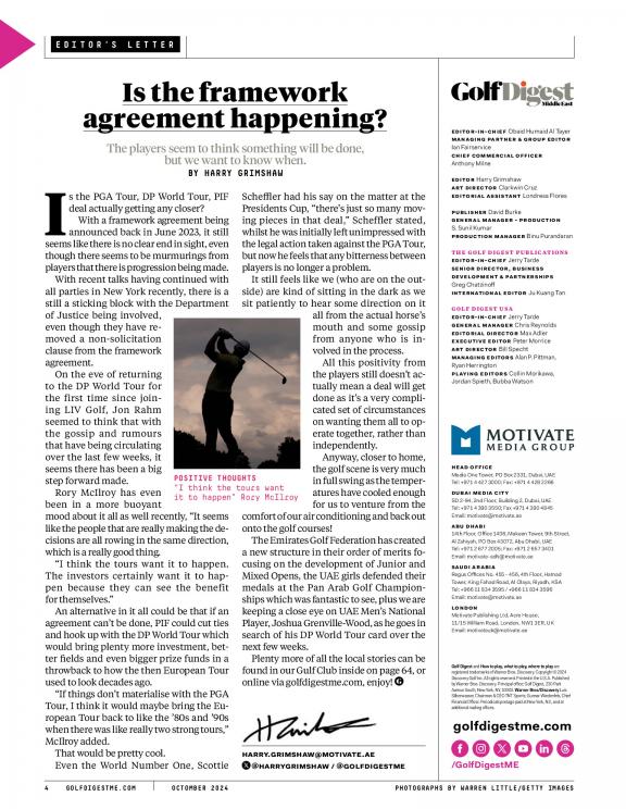 Golf Digest Middle East is the leading golf publication in the region and the biggest golf magazine brand globally. Featuring a blend of local and international content, Golf Digest Middle East is essential reading for the passionate golfer - combining expert tuition from the world's leading tour professionals with the latest in equipment, news and travel.