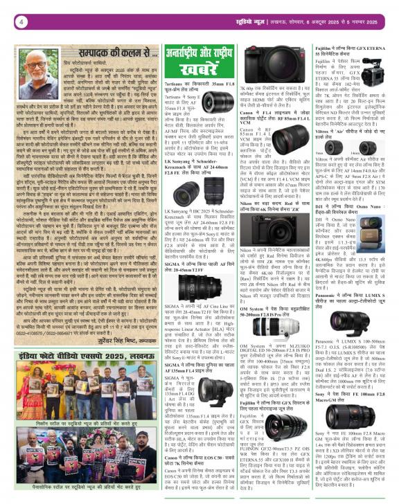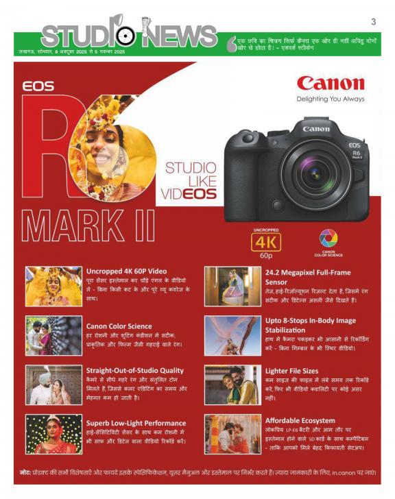 Studio News is monthly 16 pages multi-color tabloid in Hindi. This is India First Photography newspaper, which is published in Hindi, enabling the studios, photographers and other Photography trade related technicians to get first-hand knowledge and understanding about the latest products, help them acquire skill to use the products and make them proud owners. STUDIO NEWS is focusing and distributing hard copy, to the studios in India’s state -Uttar Pradesh RAJASTHAN, GUJARAT, PUNJAB, HARYANA, HIMACHAL PRADESH, UTTARAKHAND, DELHI, BIHAR, CHHATTISGARH, JHARAHAND & MADHYA PRADESH. Circulation of hard copies is approximately 10000 every month. The main objective of The STUDIO NEWS is to educate studios, photographers and technicians with the latest technical knowledge of camera, video and other trade related equipment’s; familiarize them with the editing and other software features and support them with wide range of usages of new technological equipment’s which are quite unknown or ambiguous to them due to language barrier.