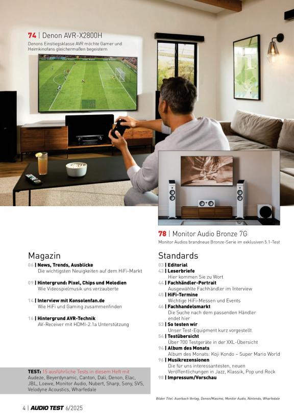 Für jedes Qualitätslevel und jeden Geldbeutel gibt es die passenden Geräte, welche die Redaktion der AUDIO TEST in diesem Ratgeber für den guten Ton vorstellt. Die Themenbereiche umfassen sowohl HiFi als auch Surround, analoge und digitale Audiotechnik, Zubehör sowie lifestylige Ambient-Elemente. Im hochwertig ausgestatteten hauseigenen Testlabor testen unsere Experten mittel- bis hochpreisige Produkte, wobei der Fokus nicht ausschließlich auf fachspezifischen Testtabellen liegt. In praxisnahen Workshops geben wir zahlreiche Insider-Tipps und Einstellungshilfen, berichten über die Innovationen der Audiobranche oder wagen einen Blick hinter die Kulissen traditionsreicher Hersteller. Zielgruppe sind Audiophile Einsteiger und Experten, die Hilfe bei Kaufentscheidungen suchen und bereit sind, viel in eine exklusive HiFi- und Surround-Anlage zu investieren. Engagierte Leser mit Affinität für Produkte und Innovationen im Audiobereich. Leser, die als Meinungsbildner fungieren.
