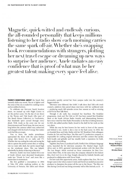GQ South Africa covers it all: Whether it's menswear, tech, wealth, celebrity, entertainment or investigative journalism.