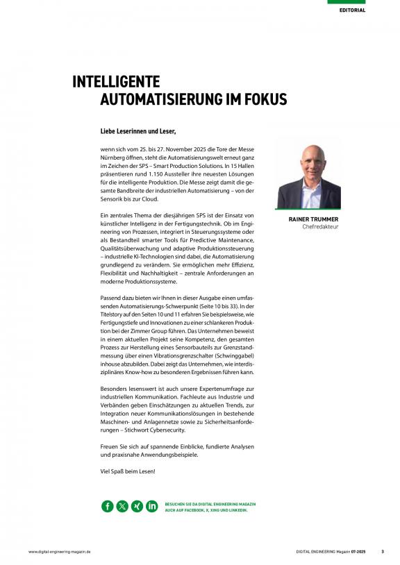 Das Fachmagazin für den Konstruktions- und Engineering-Bereich berichtet über alle Aspekte, die bei der integrierten (ganzheitlichen) Produktentwicklung wichtig sind. Im Mittelpunkt stehen Lösungen und Strategien für ein leistungsfähiges Engineering sowie Innovationen aus der Antriebstechnik, Automation, E-Technik, Fluidtechnik, Verbindungstechnik und Konstruktionsbauteile.