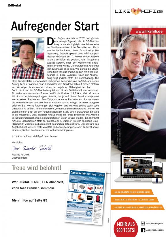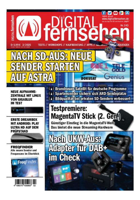 DIGITAL FERNSEHEN ist der erfolgreiche Wegweiser für die Nutzung digitaler Techniken. Das Magazin berichtet über die neuesten Produkte und Entwicklungen in der TV-Branche und informiert die Leser rund um den digitalen Fernsehempfang per Satellit, Kabel, Antenne oder Internet (IPTV). Zudem liegt ein großes Augenmerk auf den neuen interaktiven Medien. VOD-Dienste, Apps, HbbTV sowie Mediatheken gehören zum festen Bestandteil. Techniktipps, Einstellhilfen und Workshops mit Nutzwert für den Leser vervollständigen das Profil. Zahlreiche Hintergrundberichte geben dem Zuschauer Einblicke in die neue multimediale Welt, die Aktivitäten vor und hinter den Kulissen der digitalen TV-Szene werden beleuchtet, die stärkere Vernetzung der Medien nicht außer Acht gelassen. Unsere Redakteure berichten praxisnah über neue Verbreitungsformen und -standards, über interaktive Anwendungen oder digitale Zusatzdienste – ohne auf unverständliche und vor allem unkommentierte Fachsprache zurückzugreifen.