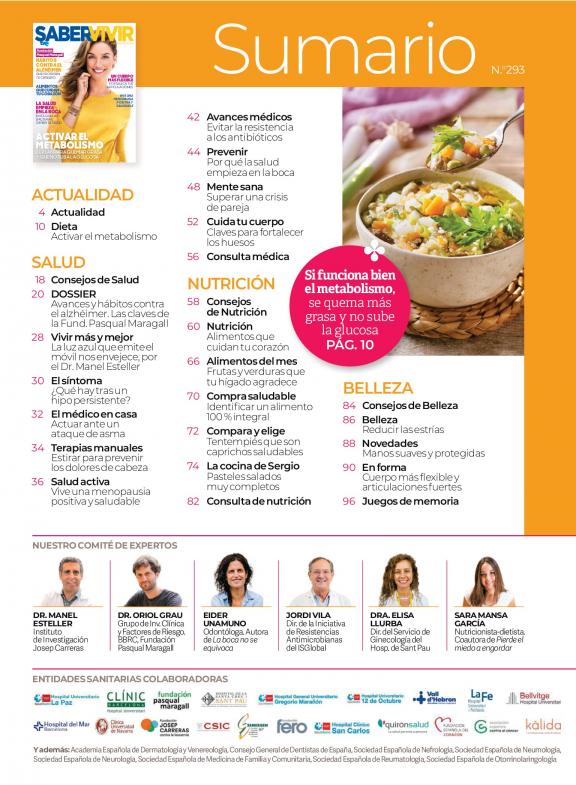 SABER VIVIR España: La revista mensual nº1 en ventas. Un referente en salud, alimentación y calidad de vida. Con contenidos rigurosos y apoyados por los mejores profesionales. Entre sus páginas podemos encontrar información sobre cómo mejorar el exceso de peso, la presión arterial, el colesterol o el funcionamiento del corazón, entre otros muchas cuestiones de salud; las pautas para seguir una alimentación saludable; y el estilo de vida que nos permite vivir mejor.