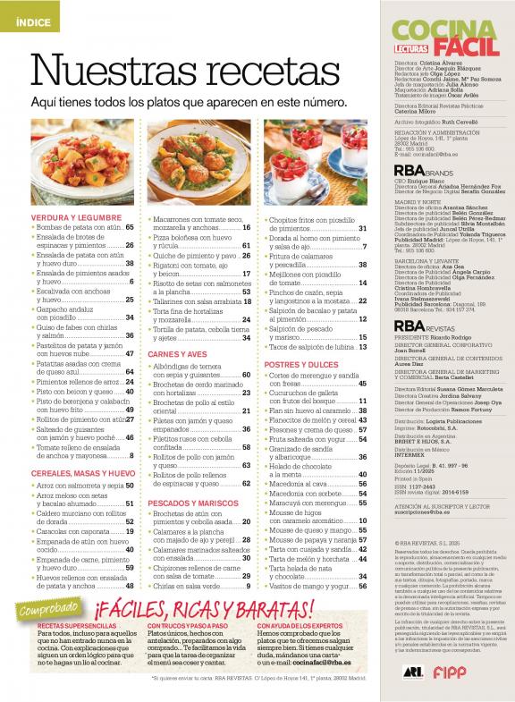 COCINA FACIL ESPAÑA La revista de cocina con recetas fáciles y económicas elaboradas con productos de temporada que soluciona tus menús diarios. Más de 50 ideas superapetitosas para comer bien, de forma variada y con el mínimo gasto.