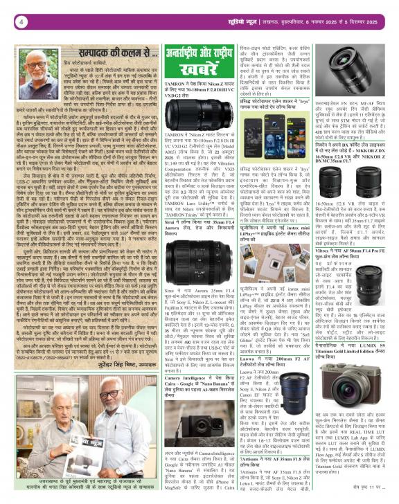 Studio News is monthly 16 pages multi-color tabloid in Hindi. This is India First Photography newspaper, which is published in Hindi, enabling the studios, photographers and other Photography trade related technicians to get first-hand knowledge and understanding about the latest products, help them acquire skill to use the products and make them proud owners. STUDIO NEWS is focusing and distributing hard copy, to the studios in India’s state -Uttar Pradesh RAJASTHAN, GUJARAT, PUNJAB, HARYANA, HIMACHAL PRADESH, UTTARAKHAND, DELHI, BIHAR, CHHATTISGARH, JHARAHAND & MADHYA PRADESH. Circulation of hard copies is approximately 10000 every month. The main objective of The STUDIO NEWS is to educate studios, photographers and technicians with the latest technical knowledge of camera, video and other trade related equipment’s; familiarize them with the editing and other software features and support them with wide range of usages of new technological equipment’s which are quite unknown or ambiguous to them due to language barrier.