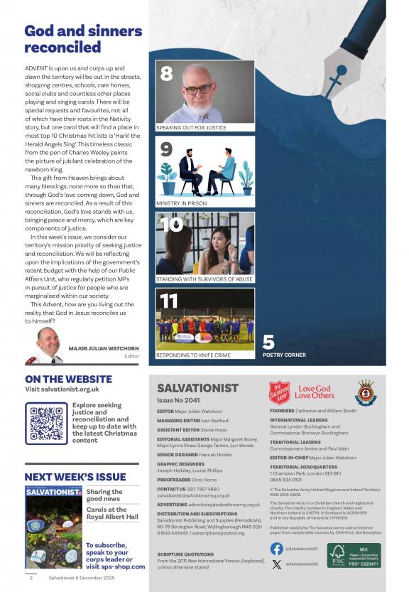 SALVATIONIST of Ireland is a weekly magazine for church members and friends of The Salvation Army. With inspiring testimonies, Bible studies, updates and more