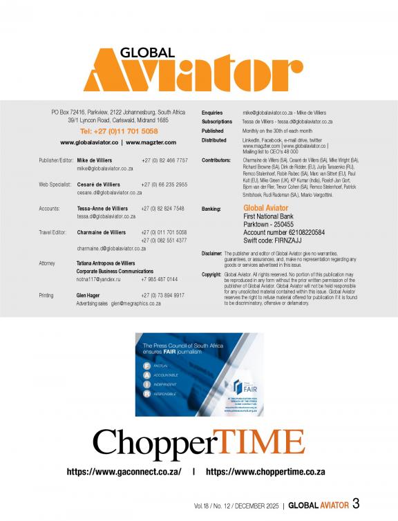 • SAA accidents from 1937 - 1987 • Changes in Store for Pilots during 2013 • Batteries can fly - dreamliners cannot • The value of a good CRM • Final data from Red Bull Stratos freefall. • USS Harry S Truman - Multifunctional taskforce in the Arabian sea • Handover of Botswana Defence Force PC-7 MkII • Nigel Hopkins - Aerobatics and Airliners do go • Denel Pilots spread their wings into Africa • The growing potential of Russian Helicopters in Latin America • Snake on a plane! • The anmanned problem • Airborne Insurance and Aircraft Finance Coporation Student of the year award • Rolls Royce Trent 1000 visited • Gulfstream G280 sets 15 new city-pair speed records as part of the reliability demonstration program And lots more!!