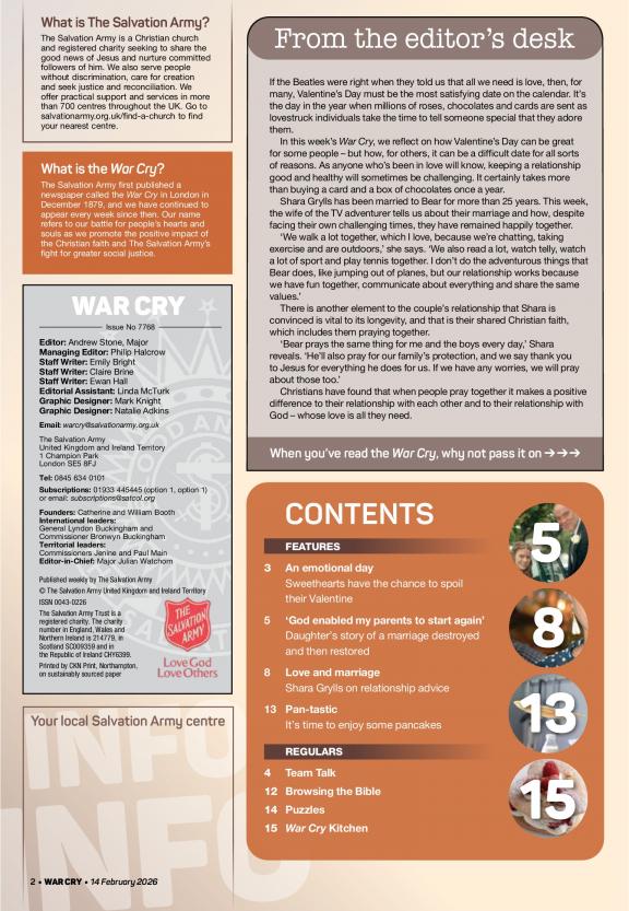The purpose of The War Cry, the official national publication of The Salvation Army in the United States, is the same as that for which the Army itself was called into being: to communicate the Christian gospel, to bring people to experience Jesus Christ as Savior and inspire them by His example.