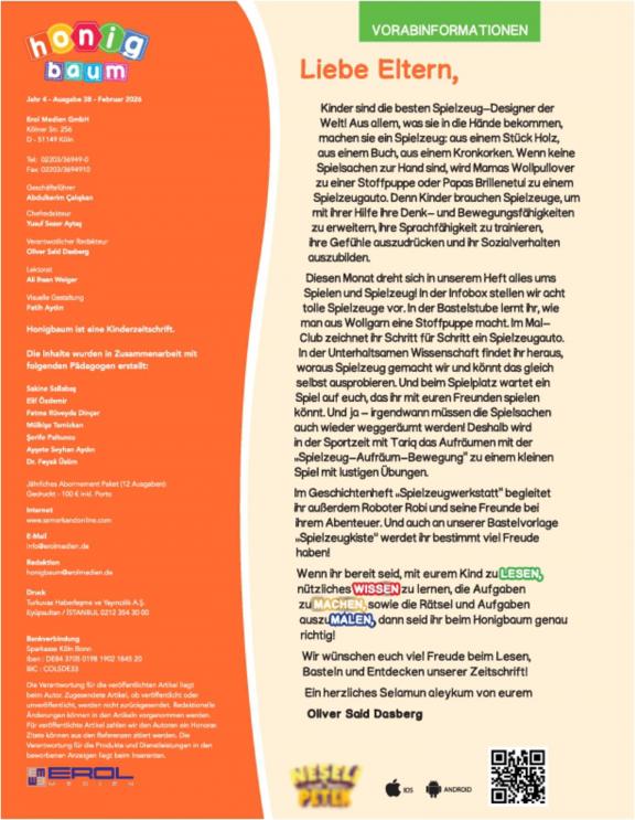 Liebe Eltern Wenn ihr bereit seid, mit eurem Kind zu LESEN, nützliches WISSEN zu lernen, die Aufgaben zu MACHEN, sowie die Rätsel und Aufgaben auszuMALEN,, dann seid ihr beim Honigbaum genau richtig! Wir wünschen euch viel Freude mit unserer Zeitschrift! Ein herzliches Selamun aleykum von eurem Oliver Said Dasberg