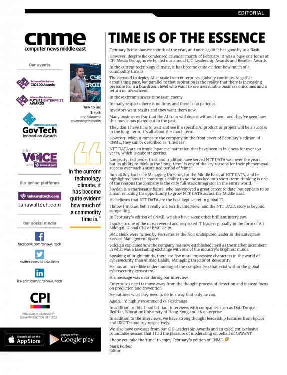 For any serious IT player in the Middle East, there are key market sectors that are easy to list – government, energy, banking, education, health, hospitality and so on. One key question is how do you use your marketing spend effectively to reach and influence the key decision makers in these markets? Plan and influence their strategies? For two decades, Computer News Middle East (CNME) has been the link between the regional IT player and these key target markets. It has driven the messages of local relevance, business benefit and technology into focus for these decision makers. The magazine covers all the important market sectors in depth, combining interviews, best practice case studies, news analysis and market trends through focused sections. Add to this analysis of global news, exclusive interviews with global IT players from Silicon Valley to Taipei and you have an authoritative route to market.