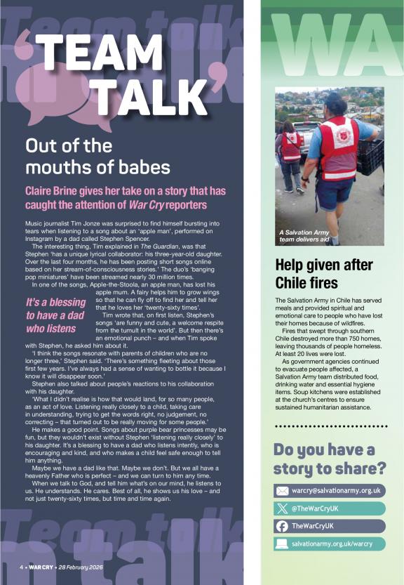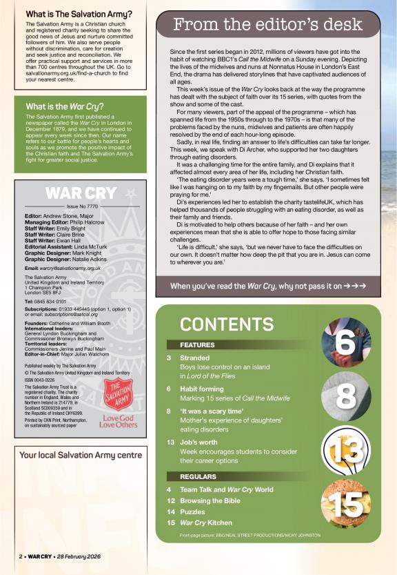 The purpose of The War Cry, the official national publication of The Salvation Army in the United States, is the same as that for which the Army itself was called into being: to communicate the Christian gospel, to bring people to experience Jesus Christ as Savior and inspire them by His example.