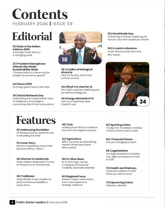 senior leaders in public service and the public sector in general, Public Sector Leaders speaks to an audience with the highest level of authority - government decision-makers. With a digital readership of 40 000 monthly, Public Sector Leader is the only specialised platform that offers a window of opportunity for marketers and communicators in both the public and private sectors to engage with an audience of senior government officials. As a group, this audience presides over a procurement budget of more than R150 billion per annum and their requirement list includes both products and services from the corporate sector. Their procurement decisions range from acquiring technology solutions, legal services, performance tools, audit services, communication solutions, catering services, security, office equipment, buildings and facilities, environmental products, waste-management solutions and general products. The Purpose of the Brand: Celebrating and showcasing trusted ethical and best practice in the public sector to an African & global audience - highlighting innovation, policy making and community initiatives Shining an independent light on what public servants are doing Our goal is to start in South Africa and grow into Africa