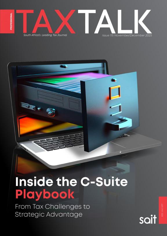TaxTalk is South Africa's only publication dedicated to tax. The Jul/Aug Special Income Tax Return issue is a practical guide for taxpayers, accountants, practitioners and everyone in between this Tax Season!